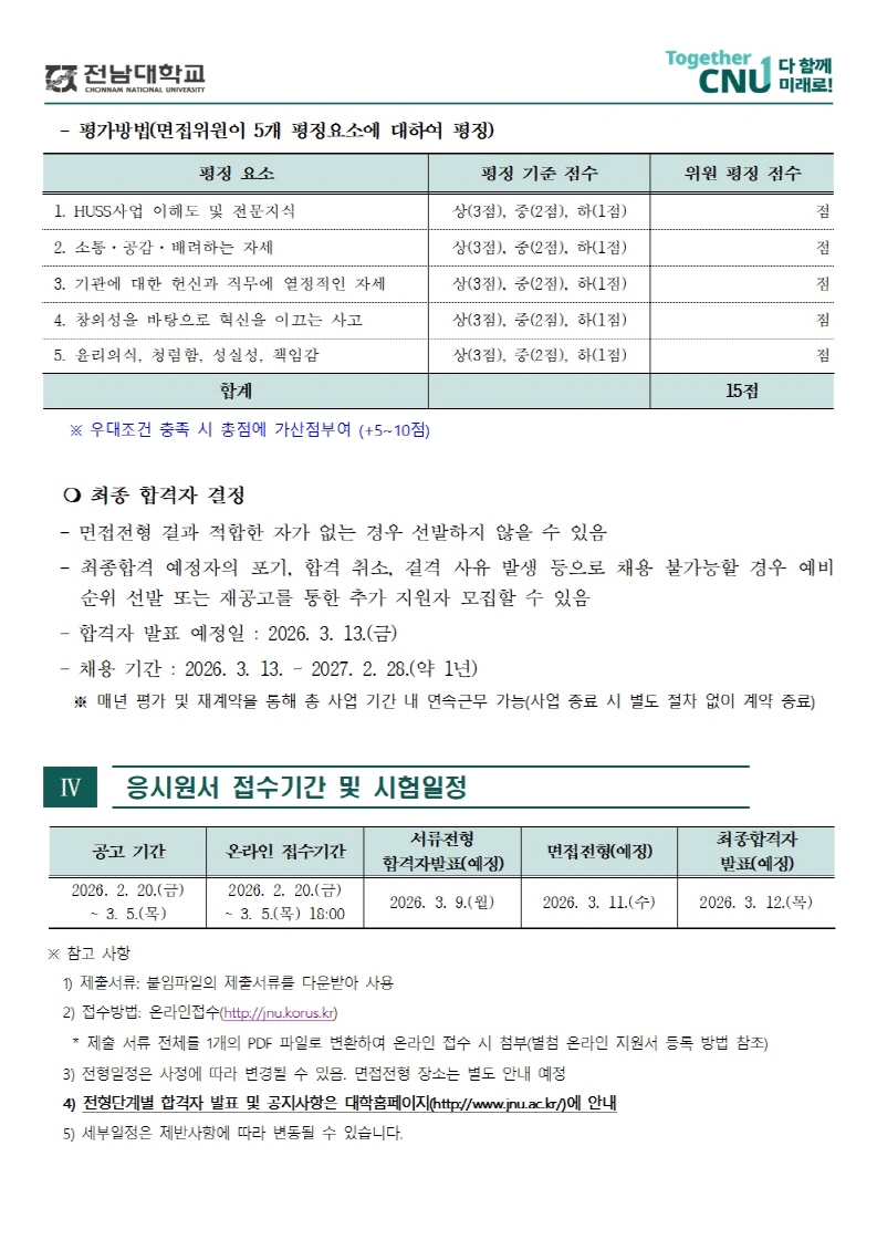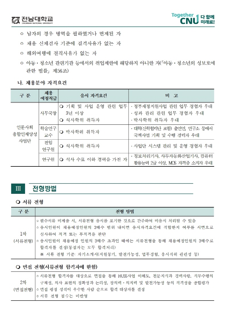 2026년도 제1회 전남대학교 인문사회 융합인재양성사업단(HUSS) 직원 채용 공고